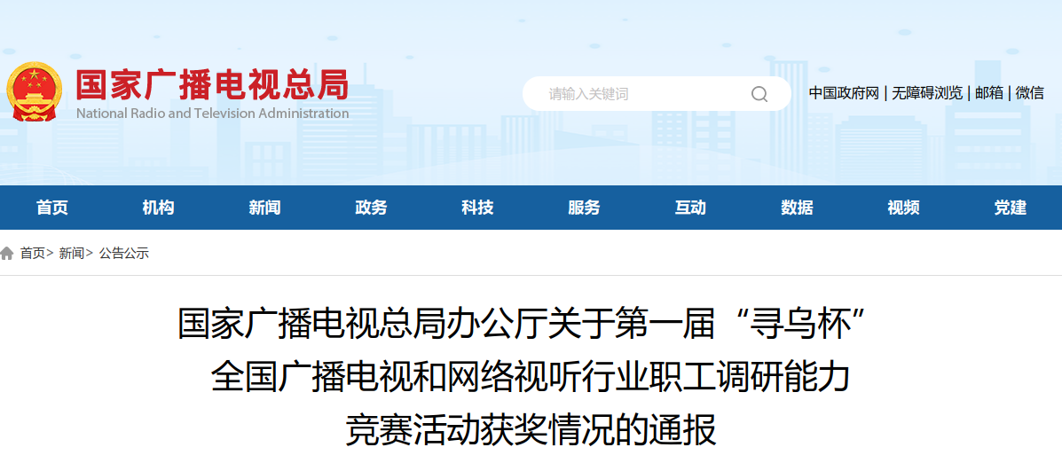 我局选送调研报告获第一届“寻乌杯”全国广电视听行业职工调研能力竞赛二等奖