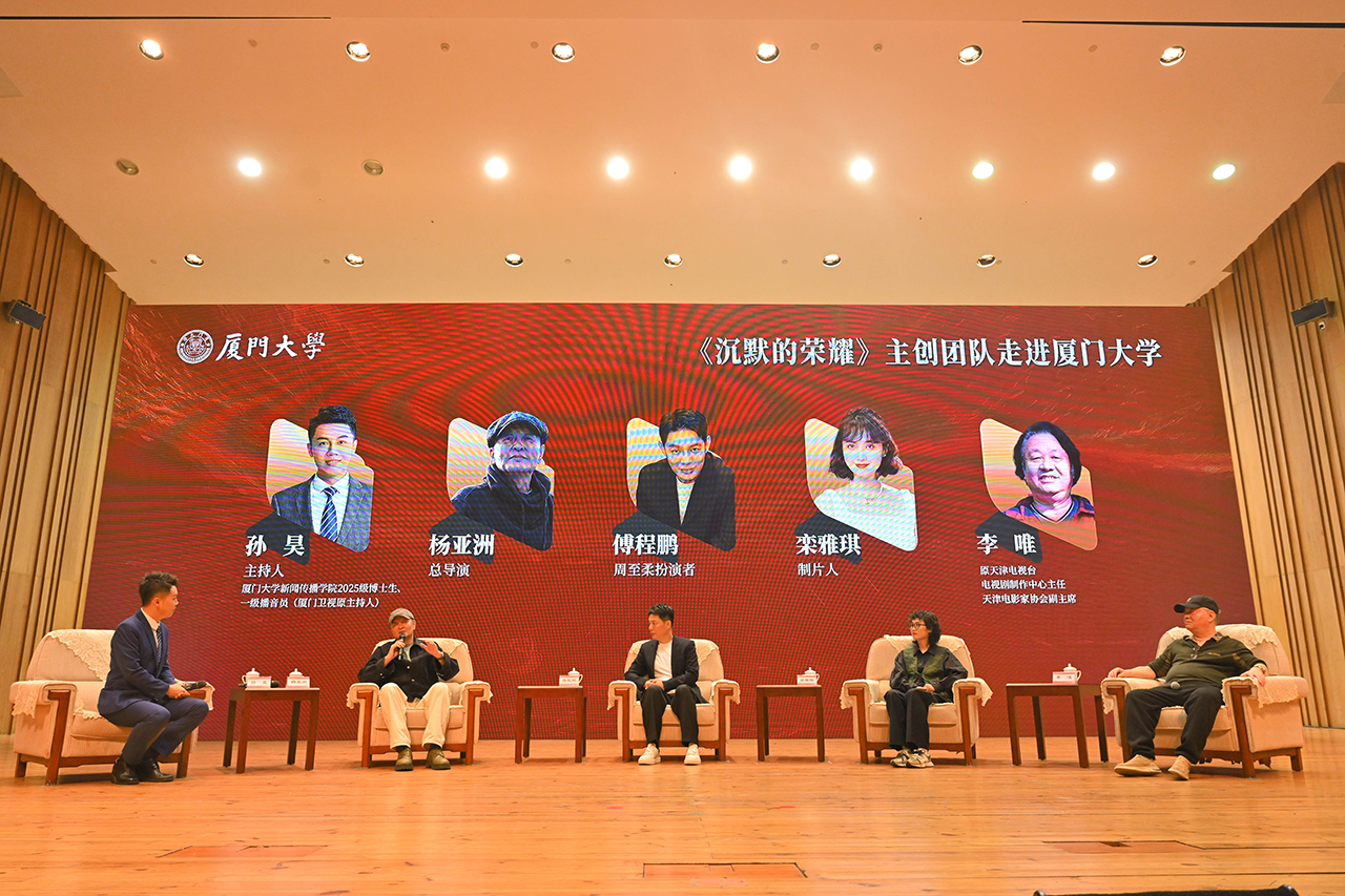11月14日,闽派重点电视剧《沉默的荣耀》总导演杨亚洲,剧中周至柔扮演者、演员傅程鹏,制片人栾雅琪等主创人员,及陈宝仓烈士外孙女李敏、知名编剧李唯等共同走进厦门大学,与师生面对面互动交流,重温那段峥嵘岁月,体悟信仰的磅礴力量。省委宣传部副部长、电视剧《沉默的荣耀》顾问陈勇,省广播电视局党组书记、局长、电视剧《沉默的荣耀》总策划王中,省委教育工委副书记、省教育厅党组成员、副厅长陈洪尧,厦门大学校党委常务副书记林东伟,厦门大学校党委常委、宣传部/教师工作部部长高和荣等出席活动。