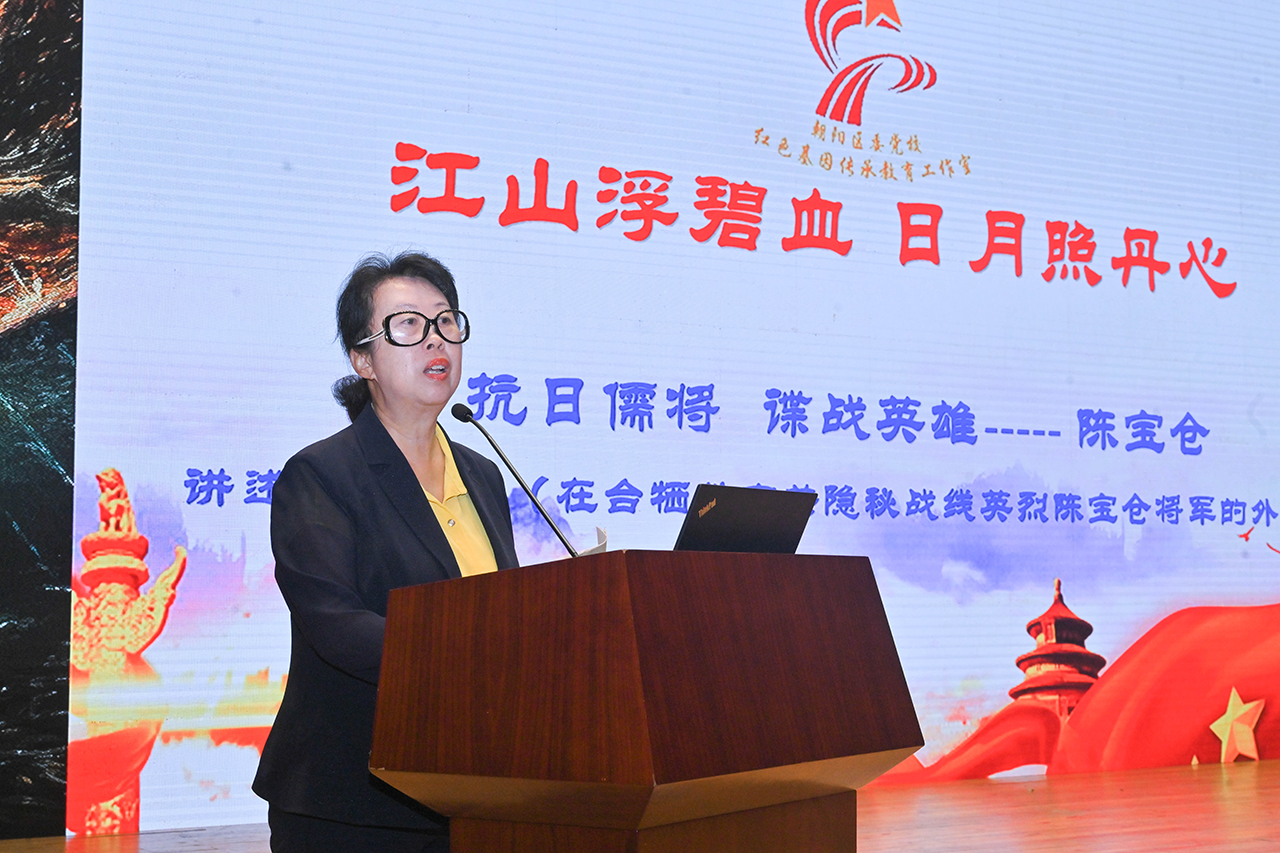 陈宝仓烈士外孙女李敏现场以“江山浮碧血 日月照丹心”为题,讲述了以陈宝仓将军为代表的革命先烈在隐蔽战线坚持斗争的感人故事。