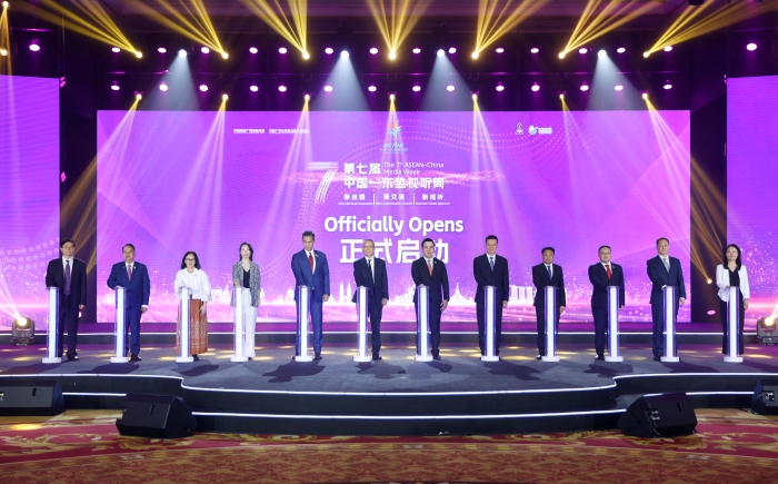 6月26日晚,由中国国家广播电视总局、泰国文化部、泰国媒体发展基金会、中国广西壮族自治区人民政府共同主办的第七届中国—东盟视听周在泰国曼谷开幕。中国国家广播电视总局副局长董昕、广西壮族自治区人民政府副主席胡帆、泰国文化部副部长普洛蓬·维帕迪蓬密帕贴、泰国总理政治事务副秘书长苏西·席中坤、泰国媒体发展基金会首席执行官塔纳功·习素塞等出席活动并致辞。中泰两国视听媒体主管部门、主流媒体机构以及中国和东盟国家驻泰国使节、视听媒体代表参加开幕式。