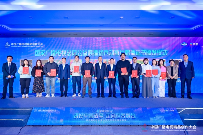 论坛对2024年度全国优秀动画片及创作人才、首届“新‘动’力——中国原创动画扶持计划”优秀作品予以表彰,为入选国家广播电视总局公益展播优秀动画片的10家版权单位代表颁发赠播证书,并举行央视动漫集团与优酷少儿战略合作签约仪式。