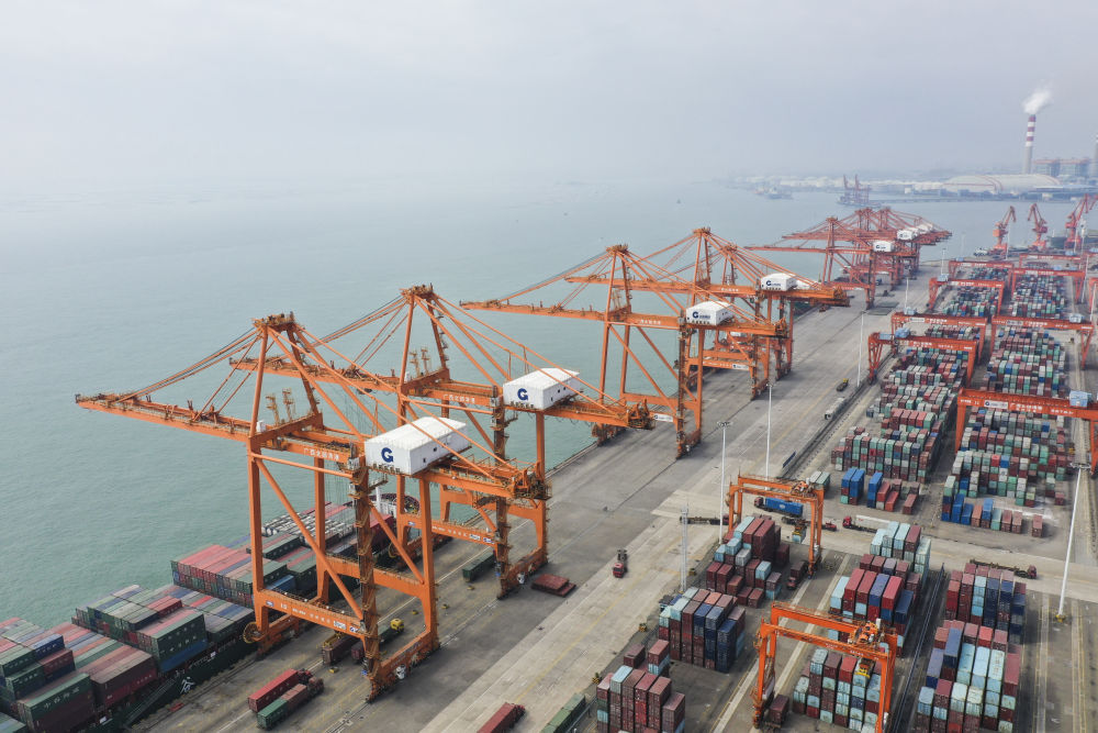 这是中国(广西)自由贸易试验区钦州港片区的集装箱码头(2019年11月23日摄,无人机照片)。新华社记者 曹祎铭 摄