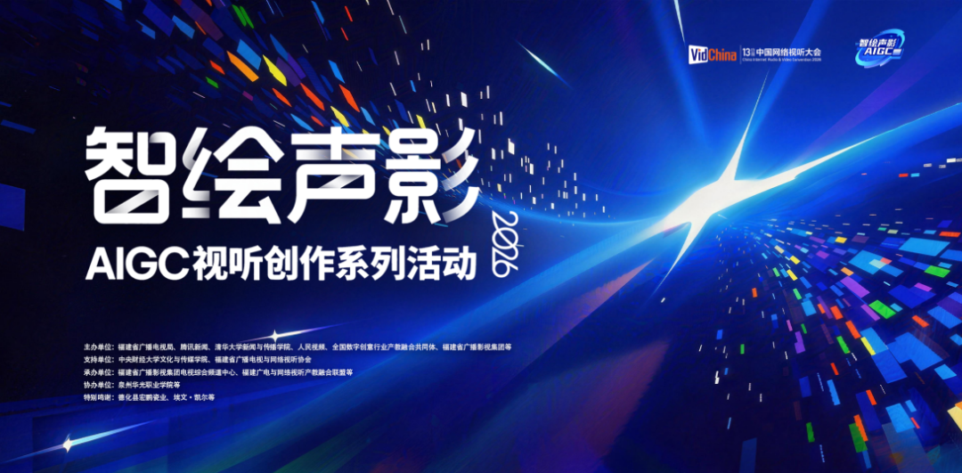 2026年4月15日,第十三届中国网络视听大会在成都举行期间,备受瞩目的2026“智绘声影”AIGC视听创作系列活动正式启动。本次活动由福建省广播电视局、腾讯新闻、清华大学新闻与传播学院、人民视频、福建省广播影视集团、全国数字创意行业产教融合共同体等单位联合主办。