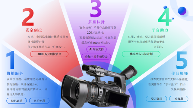 福建广电网络集团配套3000万元创投资金,对优秀项目开展投融资对接,优先购买作品“广播权”。