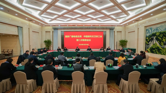 3月18日,国家广播电视总局与中国教科文卫体工会第二次联席会议在京召开。国家广播电视总局党组成员、副局长何飚,中华全国总工会党组成员、经费审查委员会主任蔡安辉出席会议并讲话。会议通报了首次联席会议以来双方合作成果及广电总局工会服务行业、维护职工权益举措,讨论2026年联合工作事项。